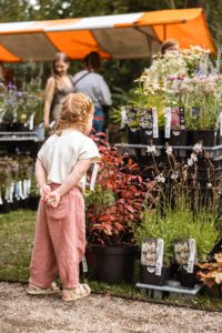 - De plantenmarkt loopt door een groot gedeelte van de tuin, ook over onverharde paden. Draag daarom geschikte wandelschoenen.